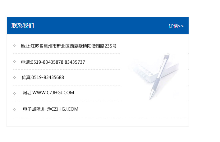 地址:常州市新北區友邦商務大廈1幢16、17層  電話:0519-85101652  傳真:0519-85112595  郵編:213022  網址:www.cz-jiayue_cn.xyjincheng.com  郵箱:xiajifengaa@163.com